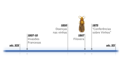 A filoxera chega a Portugal através da região do Douro em 1867 e rapidamente devasta vinhas em todo o país. Este insecto ataca a raiz da videira para se alimentar do seu suco, provocando a morte da planta. A única região que escapou a esta praga foi Colares, porque o insecto que provoca a filoxera não se desenvolve em solos arenosos como os desta região. A forma de prevenir esta praga foi descoberta, quando se verificou que as videiras americanas eram resistentes a esta doença. As videiras europeias passaram a ser enxertadas com raízes americanas, prática corrente ainda hoje.