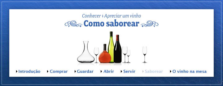 Comece por olhar o vinho e repare bem na sua cor. Depois, leve o copo ao seu nariz e sinta os aromas que estão a ser libertados. Se quiser, mexa o copo ligeiramente para estimular a libertação de outros aromas. Leve o copo à boca e beba um gole: o sabor é a combinação entre aquilo que o olfacto detectou e aquilo que é sentido pelo paladar. Na boca vai sentir a estrutura do vinho e a sua acidez.