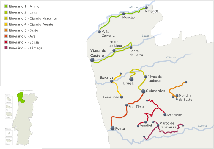 É o verde que marca a paisagem do Minho e Douro Litoral, onde se situa a região Demarcada dos Vinhos Verdes. Não é difícil cruzar-se com campos verdejantes onde correm pequenos ribeiros e a plantação das vinhas é feita em ramada e partilha o espaço de cultivo com outros produtos agrícolas. A região é marcada pelo granito dos castelos, igrejas, pontes e os típicos espigueiros. Encante-se com os locais históricos das cidades de Guimarães e Braga, sinta a brisa marítima em Viana do Castelo e rume até à tradicional Ponte de Lima. No Norte da região deguste aquele que é considerado, por muitos, o melhor Vinho Verde de toda a região, o Alvarinho. Aproveite para visitar as aldeias serranas do Soajo e Castro Laboreiro e aprecie as magníficas paisagens do Parque Nacional da Peneda-Gerês.