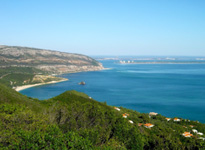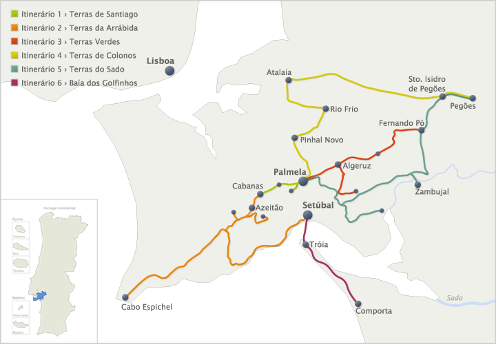 O azul do mar e do rio, o verde da serra e a possibilidade de observar tudo num só local! Nas rotas da Costa Azul, que corresponde à região vitivinícola da Península de Setúbal, as vinhas são principalmente cultivadas no interior da região. Aí produz-se a casta Moscatel, matéria-prima para o vinho generoso, outrora largamente exportado para outros países europeus. As quintas são normalmente de grande dimensão, sendo a casta Castelão, vulgarmente designada de Periquita, a casta mais cultivada. As praias de areia branca de Sesimbra e Tróia parecem irresistíveis ao olhar, a subida às falésias do Cabo Espichel e da Serra da Arrábida são obrigatórias e no final, encontre tranquilidade numa das quintas da região de Palmela. Na zona protegida do estuário do Sado, há interesse especial na observação de uma espécie de golfinhos única em Portugal.