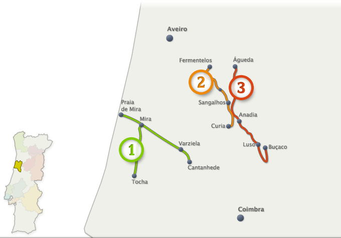 Das areias calmas do litoral até à vegetação exuberante da zona montanhosa do interior da região, visitar a Bairrada é uma oportunidade para aliar o sol da praia à frescura da montanha. As extensas dunas do litoral são pintadas pelas cores vivas das casas típicas (palheiros) e na montanha situam-se as termas do Luso e de Curia, umas das mais famosas do país.